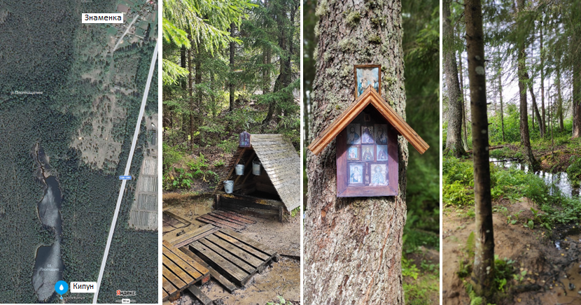 - Родник Святой источник или ключ Кипун у деревни Знаменка. Псковский район, Псковская область. Исток небольшого ручья, впадающего в озеро Плотишно.