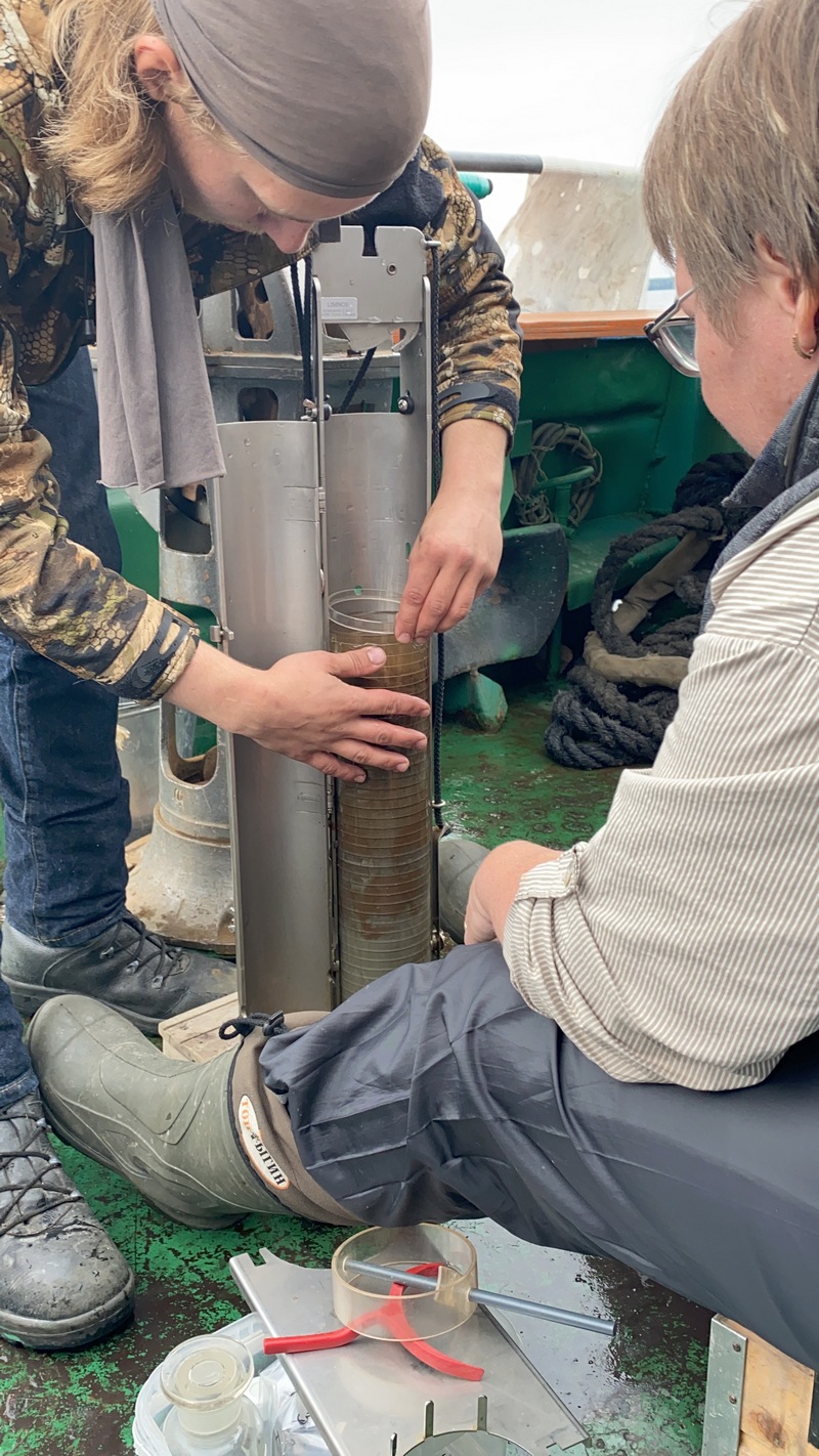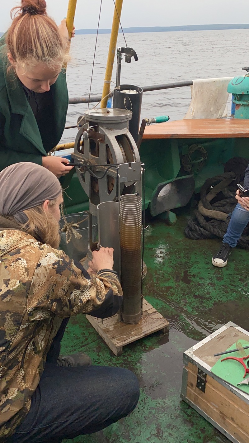 - Проба донных отложений. Север Онежского озера. Фото Е. В. Головань