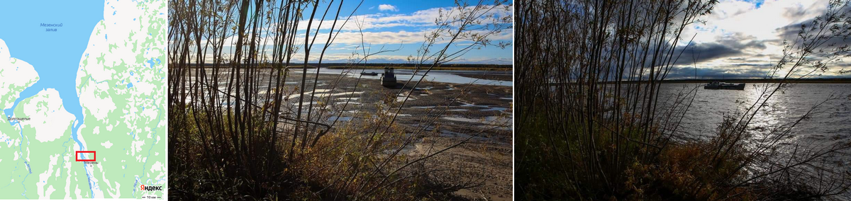 - Река Мезень во время прилива и отлива. Окрестности г. Мезень. Архангельская область. Фото НИИГА-ВНИИОкеангеология им. И. С. Грамберга