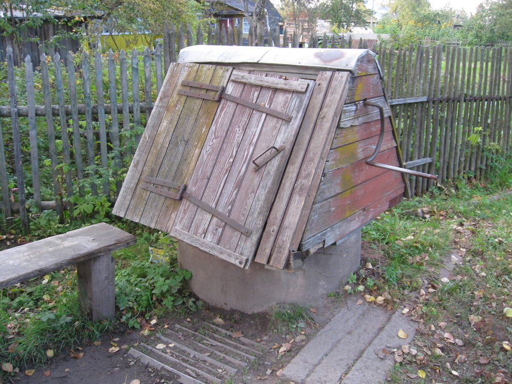 - Колодец с бетонными кольцами и воротом. Деревня Старосиверская. Улица Малая Набережная. Гатчинский район. Ленинградская область.