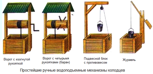 - Простейшие ручные водоподъемные механизмы колодцев. Схема.