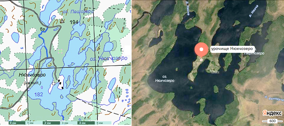 - Приозерное расселение. Мысовая деревня Нюхчозеро (урочище Нюхчозеро), межселенные территории Онежского муниципального района, Архангельская область