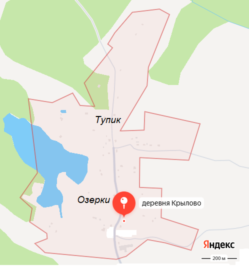 Озерки – ‘название части деревни Крылово’: «Аннý часть дерéвни, ближы к óзеру, назывáють Озерки, а другýю назывáют Тупик» (Пушк.) [СРГК, 23, с. 91].