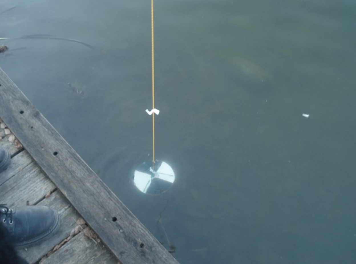 - Измерение прозрачности воды с помощью диска Секки.