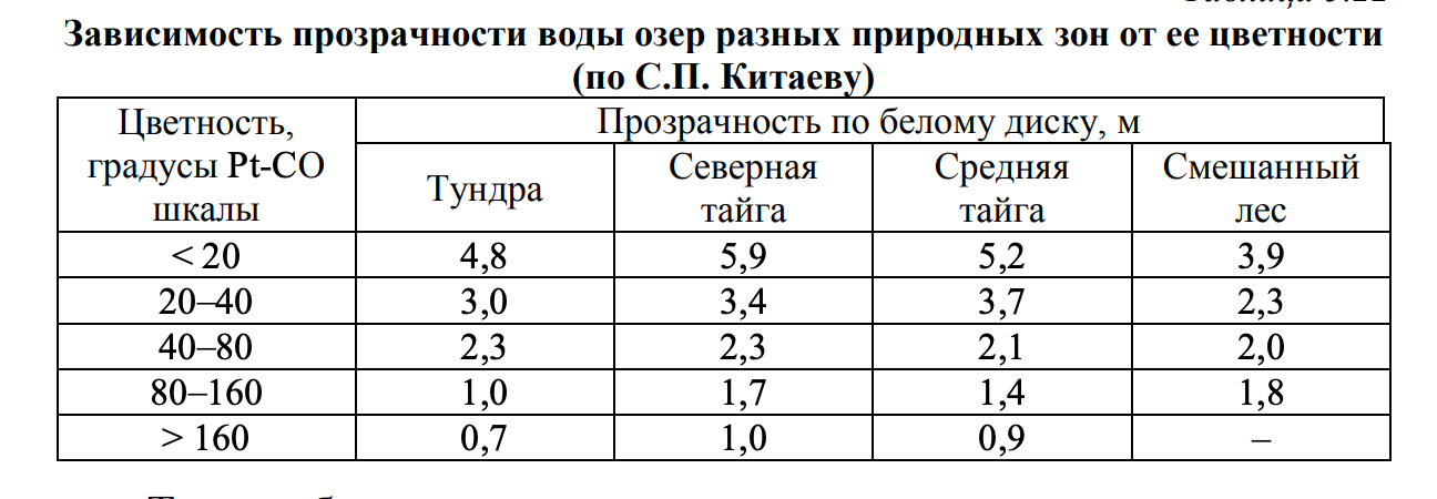 - Зависимость прозрачности воды озер разных природных зон от ее цветности.