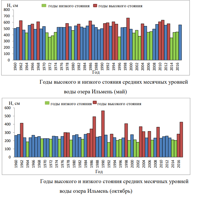 - Озеро Ильмень. Годы высокого и низкого стояния средних месячных уровней в мае и октябре.
