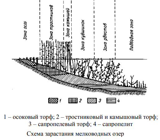 - Схема зарастания мелководных озер.